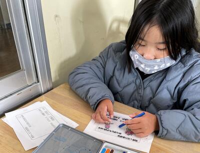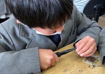 5年生は、日ごろお世話になっている地域の方々に、感謝の気持ちを届けようとプラ板でキーホルダーを作成しています。かわいいキーホルダーがたくさん完成しました。