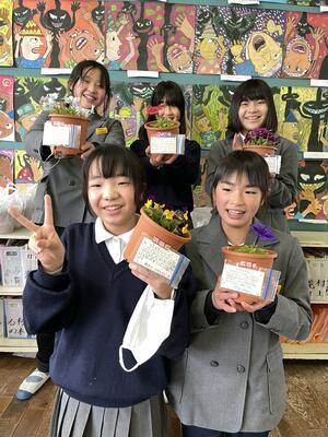 5年生は、これまでお世話になった地域の方々に、感謝の気持ちを込めて花の苗とキーホルダーをつくりました。今回は日ごろお世話になっている民生委員の方々にお届けしました。今後順次お世話になった方々にお届けしていく予定です。