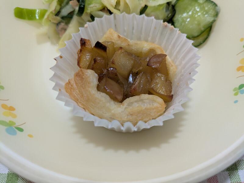 今日のデザートは、なんと手作りのアップルパイでした。リンゴをサイコロのように細かく切って、バターで炒めて、レモン汁をかけ、一つ一つパイ生地にのせ、横島小自慢のスチームコンベクションで焼いてありました。洋菓子屋さんのアップルパイのようなデザートが給食で食べられるなんて、横島小だからできることです。あらためて給食の先生方に感謝します。