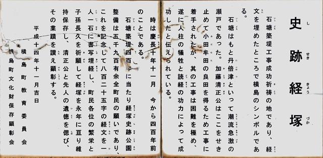 12月30日(水) 石塘は加藤清正が農地を広げるために取り組んだ大工事です。その時に人柱の言い伝えも残っています。詳細は、碑文をご覧ください。