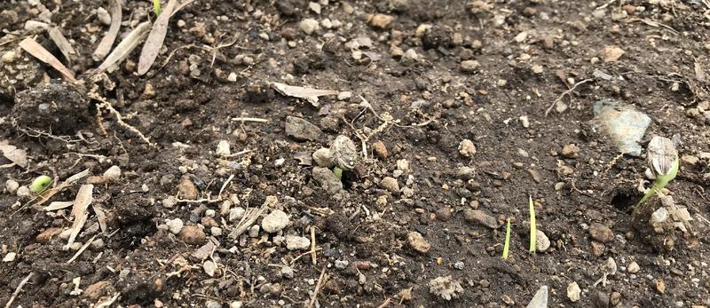 5月22日(金) 子葉の次に葉が出始めました。この後、しっかりした苗を一本にして育てていきます。