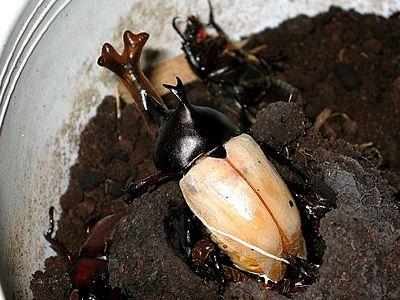 7月20日(月) 昨日の答えです。カブトムシはさなぎからかえったとき、したの写真のように背中だけは真っ白い色をしています。