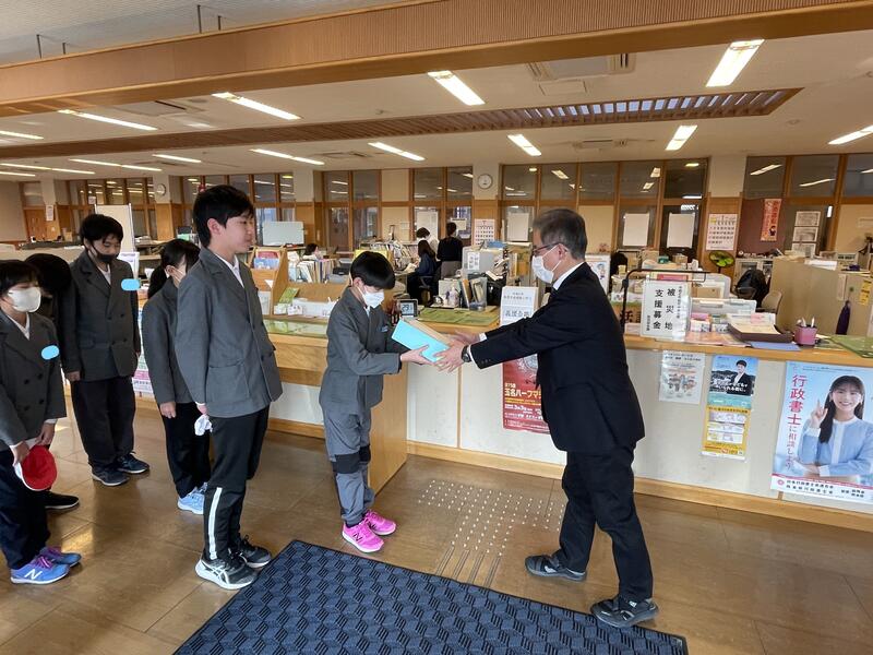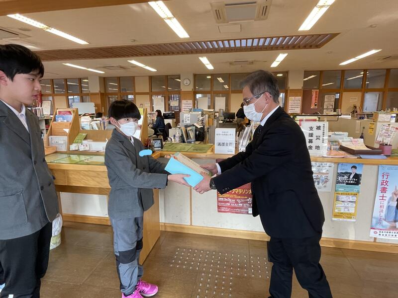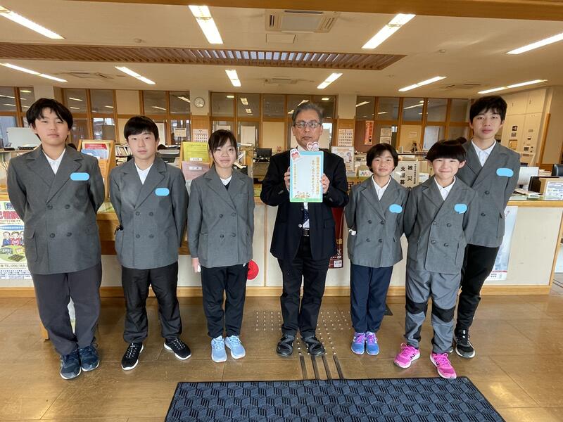 子どもたちが、それぞれの家庭や地域の皆さんの協力を得て、41,503円の尊い募金を玉名市役所横島支所を通して被災地に届けました。