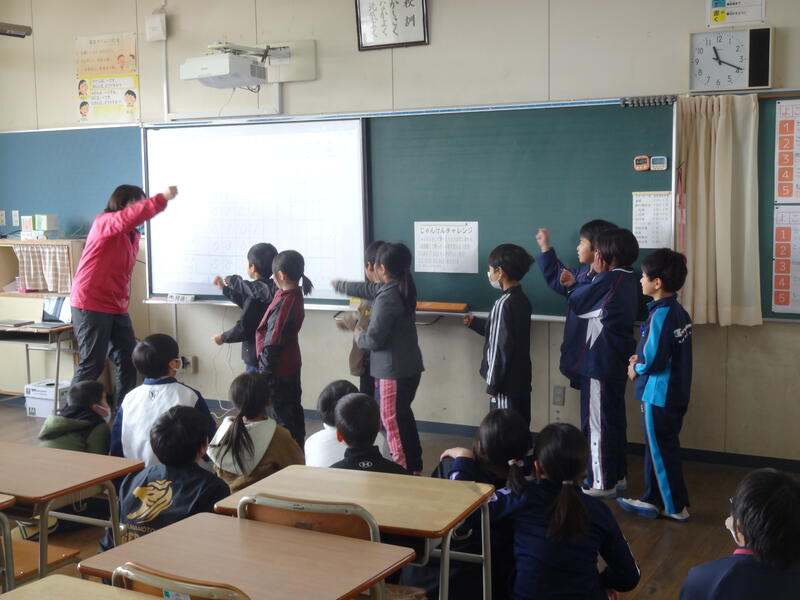 「じゃんんけんチャレンジ」 先生対班員でじゃんけんして、先生に3回負けなかった人の数で点数がもらえるゲームです。