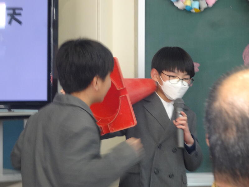 イントロ当てクイズでは、私(校長)のオリジナル曲が出題されました。子どもたちからは、「校長先生、ずる~」との声も上がりました。