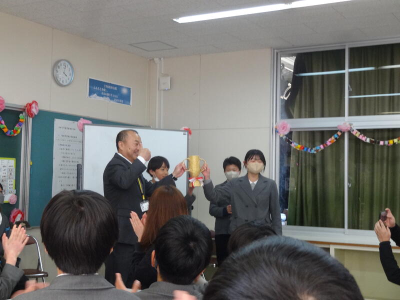 獲得合計点が同点で、2つの班が同点優勝でした。優勝した班には、子どもたちが手作りした優勝カップが授与されました。