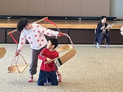 放課後子供教室は、玉名市のコミュニティ推進課が行っている国の補助事業です。横島町の放課後子供教室では、児童の放課後の居場所を確保することと地域の伝統芸能である「潟担い節」の継承を目的に行います。指導は、潟担い節保存会の皆様が担当されます。