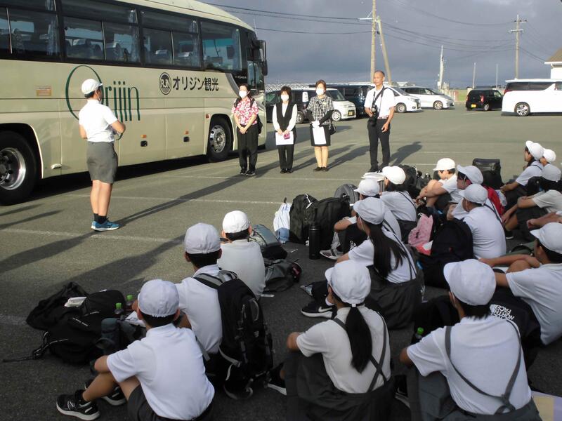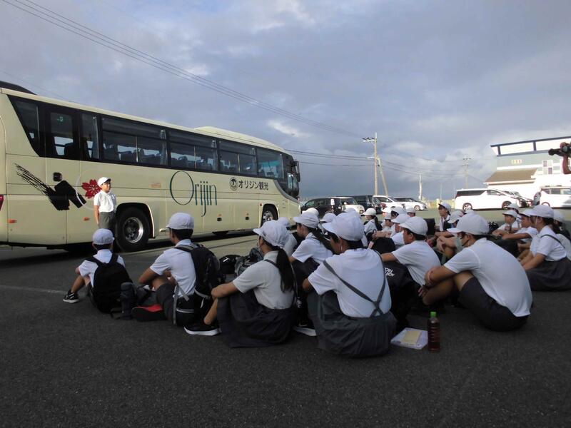只今、宿舎に到着しました。全員元気です。1年生のテルテル坊主のおかげで雨も降りませんでした。1年生のみなさんありがとうございました。午後から充実したフィールドワークができ、戦争の愚かさや悲惨さ、恐ろしさなど、たくさんのことを学ぶことができました。