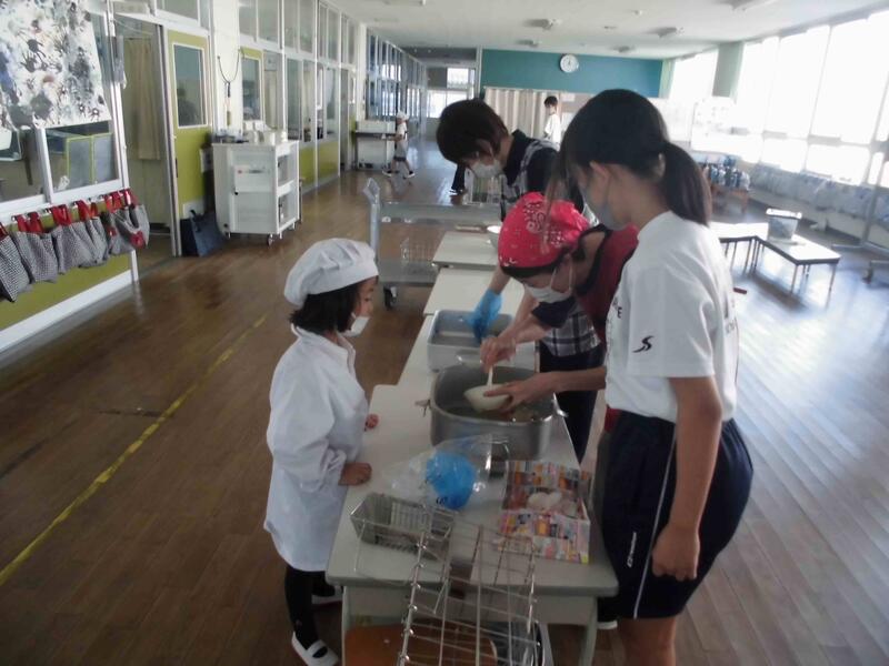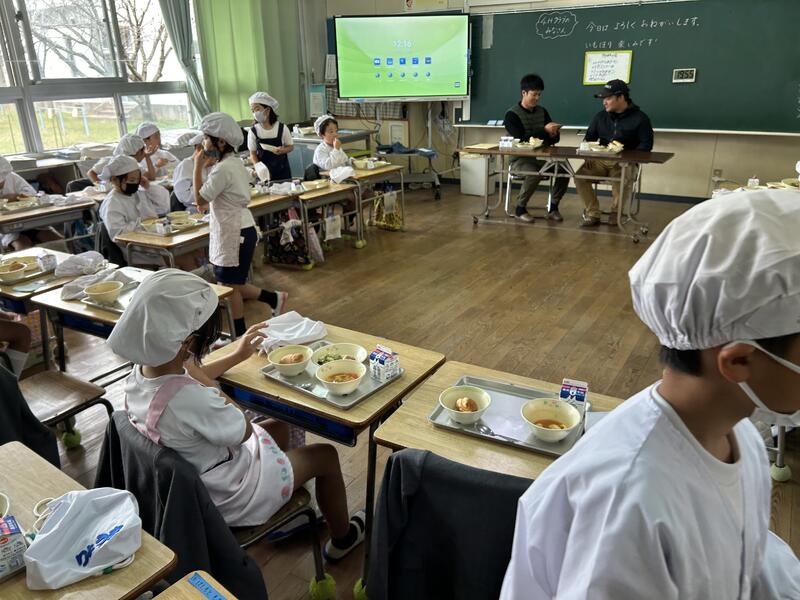 いもほりの前に、4Hクラブの方々と給食を食べました。手作り塩パンのおいしさとお兄さんたちと食べる楽しさでいつも以上に盛り上がった給食でした。