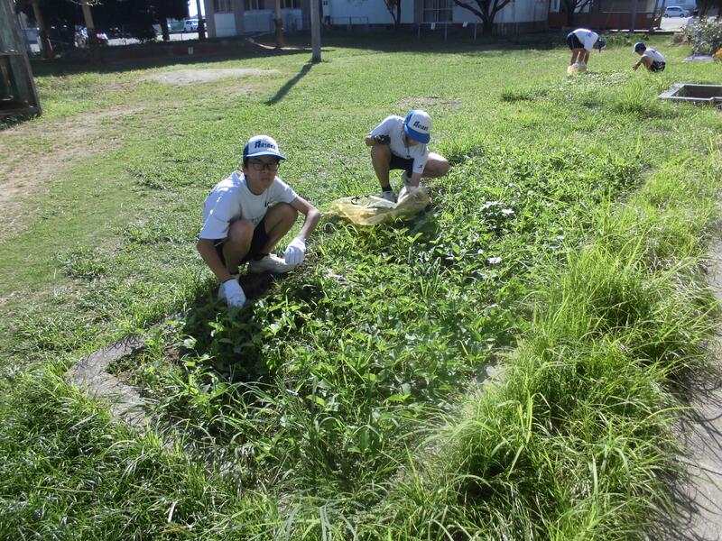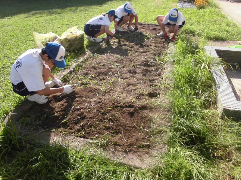 また、今日の午後は、草取りをしてくれました。さすが中学生。雑草が生い茂っていた花壇がみるみるうちにきれいになりました。下の写真を見比べてみてください。その差は歴然としています。