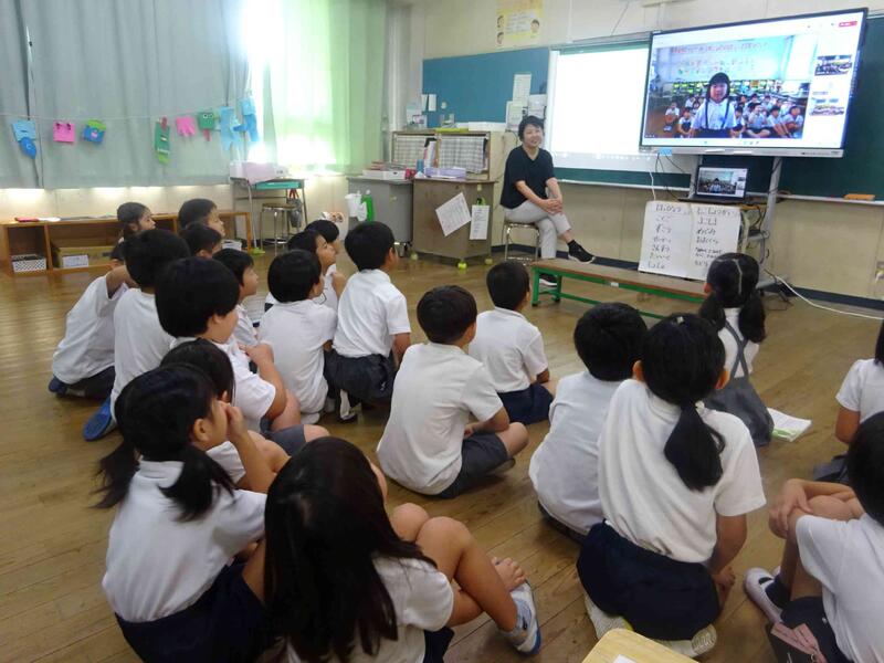 今日は、本校の1年生と大豊小の1年生との交流会でした。自己紹介や勉強していることなどを発表しました。幼稚園や保育園でいっしょだった友達も画面に映し出され、そのたびにうれしそうに手をふっていました。