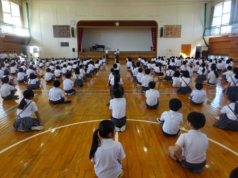 今日の鑑賞会でも、子ども達は体を揺らしてリズムをとったり、手拍子をたたいたり、口ずさんだりしながら楽しく聴いていました。また、6年生といっしょに演奏をしたり、絵本の読み聞かせに合わせて演奏したりしてくださったのも心に残りました。特に6年生は、曲調に合わせて即興で強弱をつけたりリズムをとったりしていて、とても楽しそうでした。