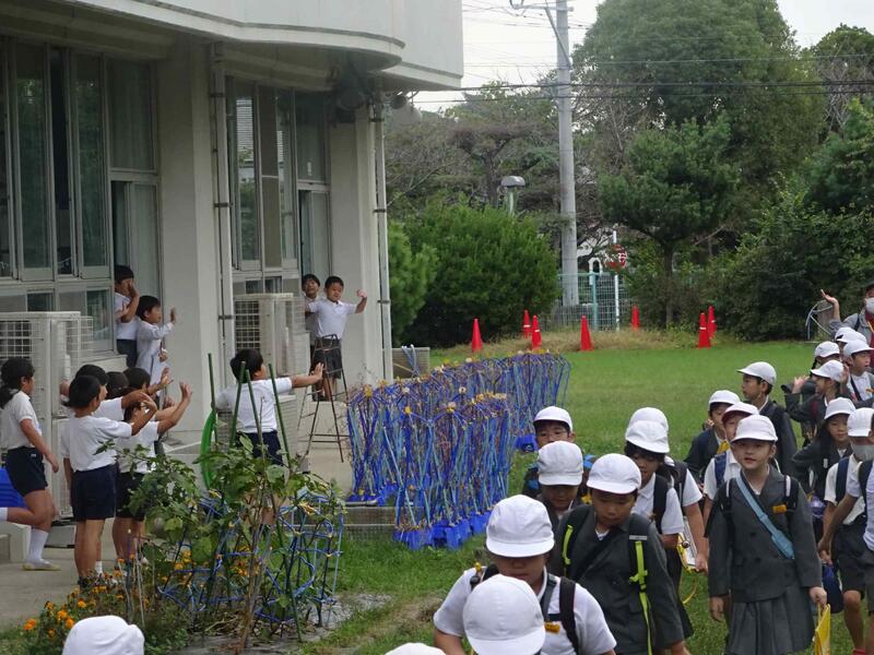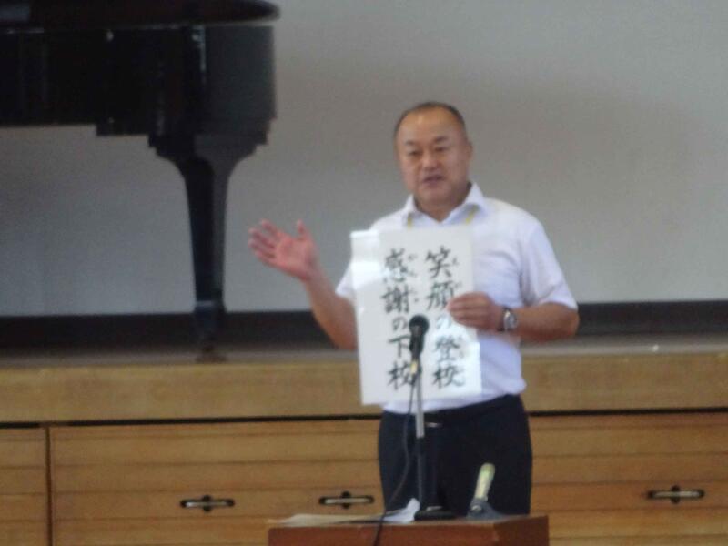 また、校長先生からは、「笑顔の登校、感謝の下校」ができたこと、みんなの命を守れたことに感謝していることを話され、後期には「人が喜ぶと嬉しかでしょうが。」の気持ちを大事にしていってほしいこと、今一度「自分の命は自分で守る、人の命はみんなで守る」を心がけてほしいことを話されました。