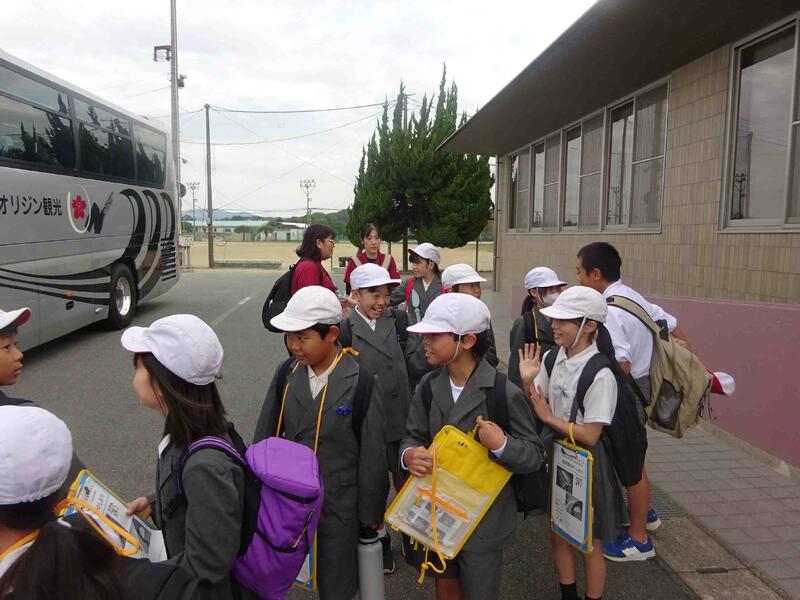 2年生が、たまなフラワーパークチーム、山本豆腐店チーム、マルエイ横島店チーム、ゆとりーむチーム、横島保育園チームに分かれて、町探検に出かけました。事前に考えていた質問をしたり、見学をしたり、作っているところを見せてもらったり、中には試食をさせてもらったところもあるようです。
