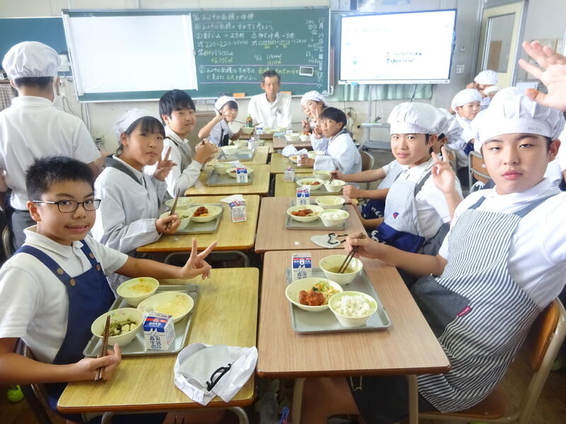 暑さも和らいできたこともあり、ランチルームでの給食を再開しました。今年は、3,4,5年生がランチルームで食べています。みんなで食べるとおいしさも倍増です。
