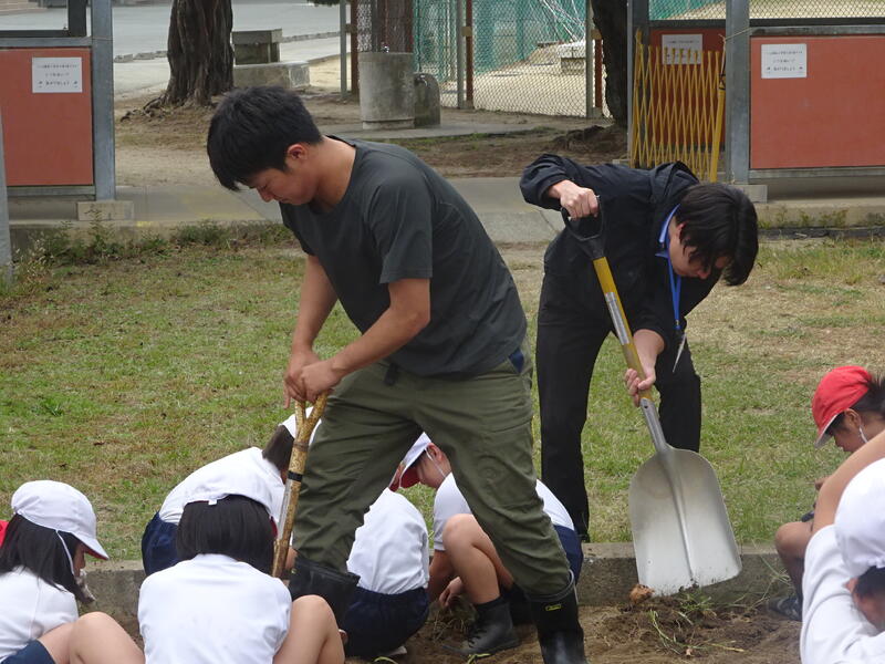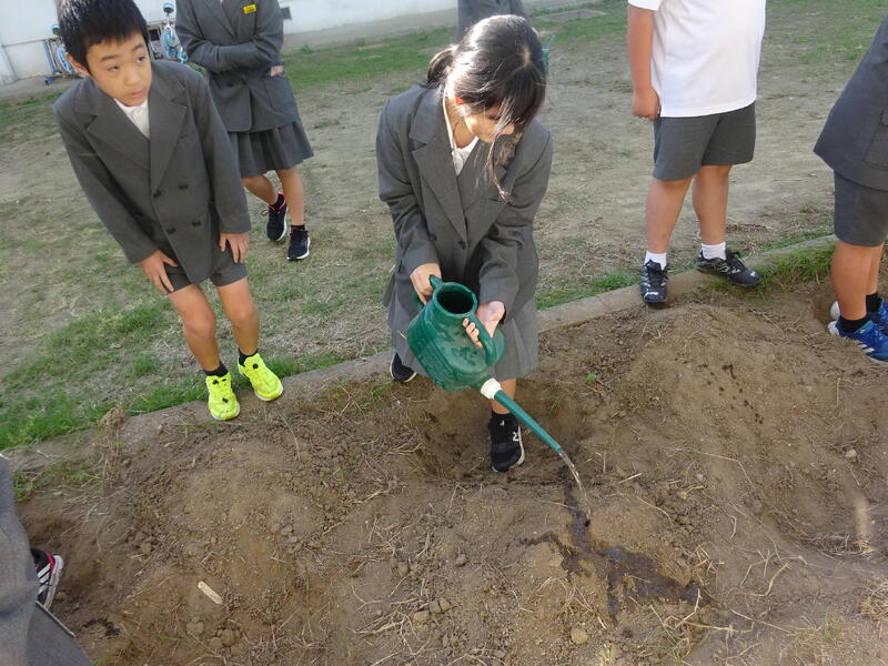 5時間目に1,2年生がいもほりをしました。4Hクラブの方々に掘り方を教えてもらいながら楽しくできました。とれたおいもで何を作って食べるか楽しみです。