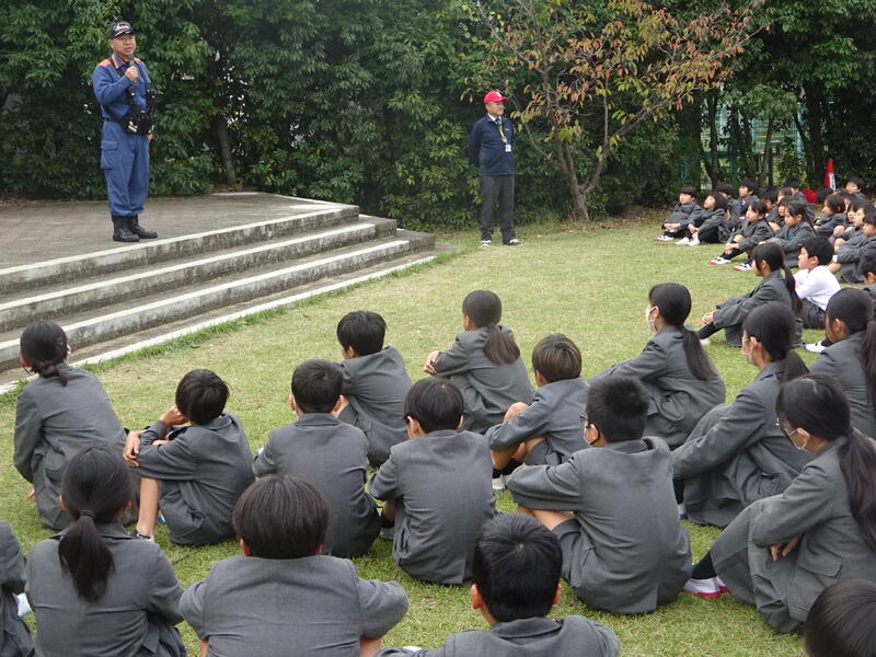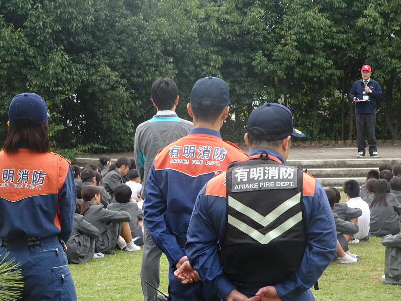 集合後は、校長先生から、「自分の命は自分で守るという合言葉がありますが、防ぐことができる火事を防ぐことも命を守ることにつながります。火のそばから離れない。暖房器具はきちんと消す。火遊びをしない。防ぐことができる火事は防いできましょう。」という話がありました。