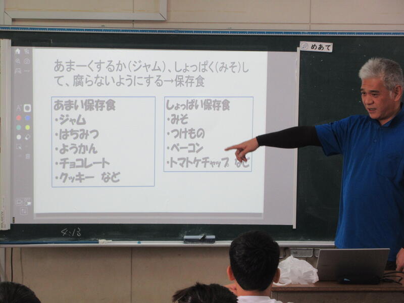 5年生は総合的な学習の時間に「玉名ブランドを探せ」のテーマのもと、地元の特産品を調べています。今日は、トマトやトマト加工品を生産・販売されている「蘇鉄園芸」さんと、海苔の養殖・加工・販売をされている中尾さんにそれぞれの工夫や思いを話していただきました。
