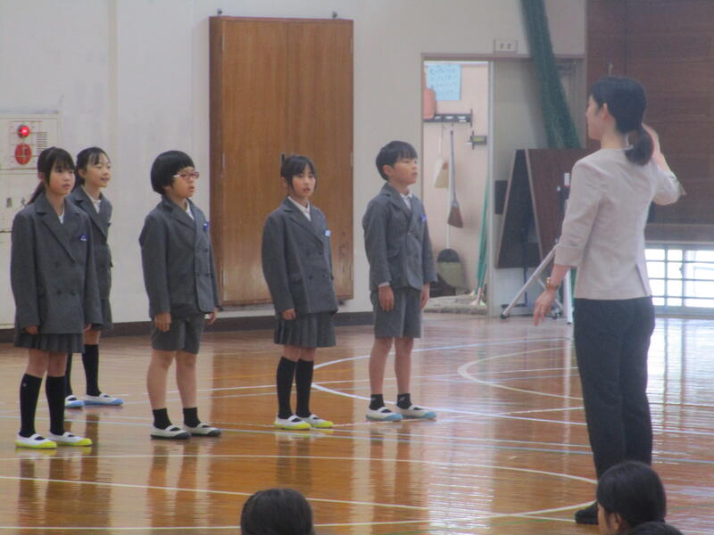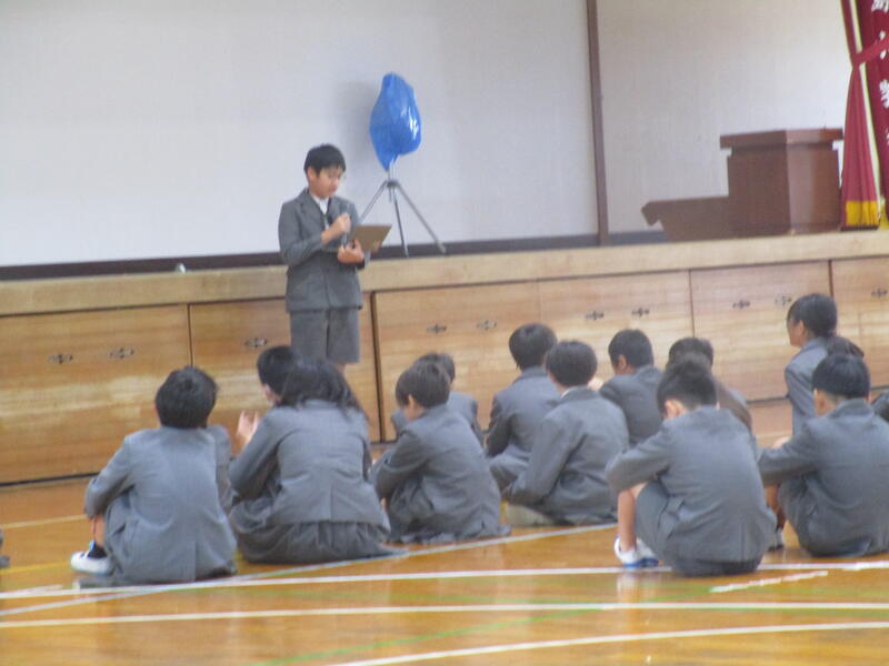 今日の集会は、4年生の合唱、生活委員会と運営委員会の発表でした。