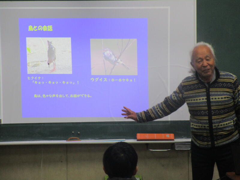 子ども達は、「渡り鳥は海の上を飛んでいる時は飛びながら寝ている」と聞いては驚き、鳴き声の真似をしてもらったら一緒にまねをし、魚を捕るために魚より速く泳げると聞いたら「俺も速く泳げる」と言ってみたり、素直な反応をしていました。満田さんもその様子を見て「これから楽しみです」と言ってくださいました。