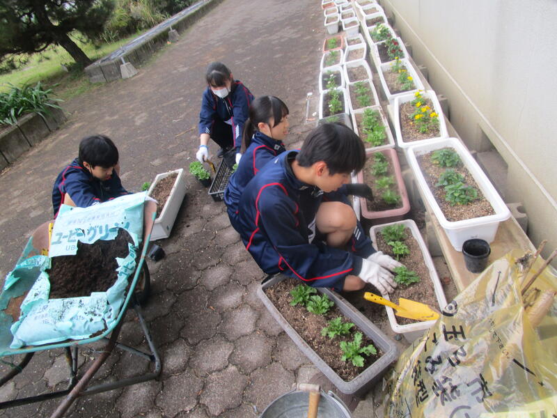 玉名高校附属中学校から4名の卒業生が職場体験に来てくれました。勉強だけでなく、休み時間にもたくさんかかわってもらい、子ども達も大変喜んでいました。放課後には、花壇の整備もしてくれました。また、金曜日は就学時健康診断だったこともあり、準備や来年度入学する予定の園児たちの引率と大活躍でした。