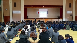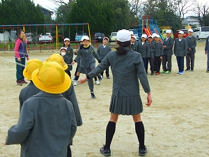 気温が低く、寒い日でしたが「縦割り班対抗長縄跳び大会」