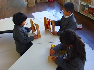 1年生で、課題を早く終えた人が、100玉そろばんを使って