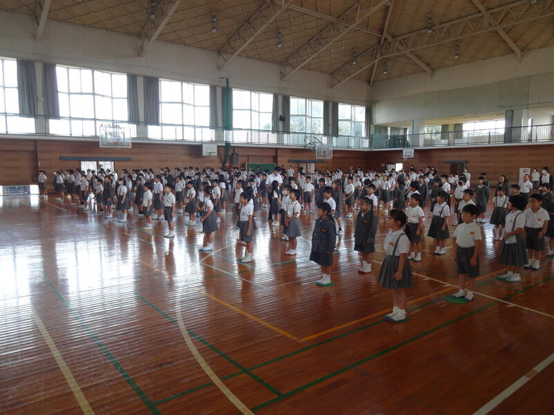 10月6日(金)の2校時に体育館に全校児童が集合して前期の終業式を行うことができました。