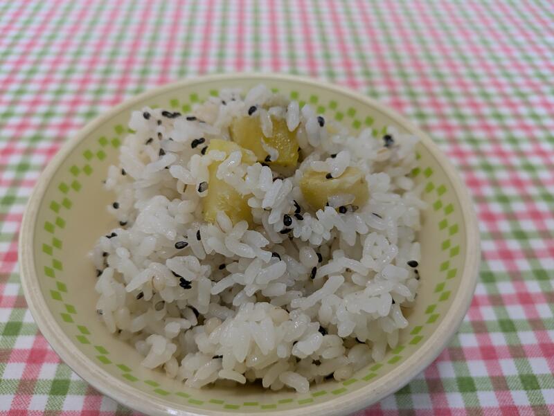 残暑というよりは、酷暑がつづいている暑さですが、秋の実りは横島小に届きました。栗は、秋の実りの代表のように思います。その栗とさつま芋をたっぷり使った栗ご飯は、子どもたちに合う塩加減を考えられて炊き上げてありました。もち米も入れてあり、とってもおいしい栗ご飯でした。