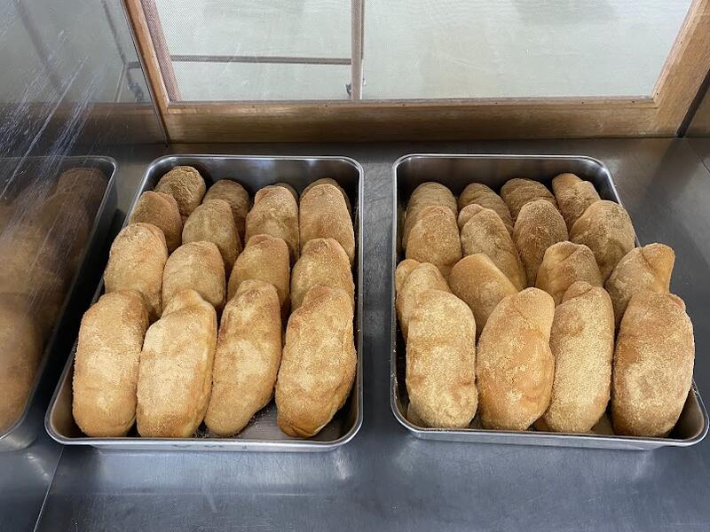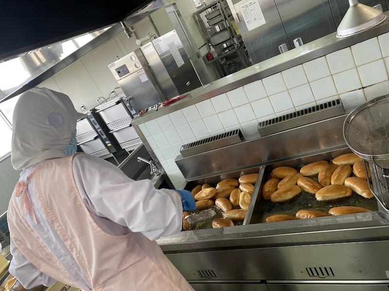 横島小の揚げパンは、おいしいコッペパンをフライヤーで揚げます。