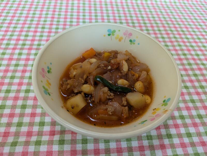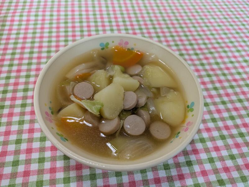 ポトフは、野菜がたっぷりの具だくさんのスープに、子どもたちが大好きなミニウィンナ―が入っていて、出汁の旨味がじゃがいもにしみ込み、温かくて、とてもおいしいポトフでした。