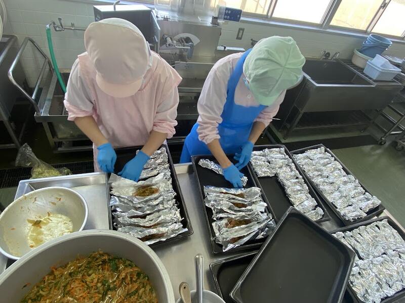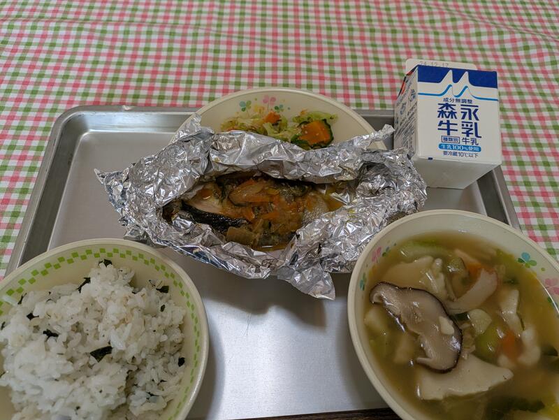 イカねぎ焼きは、小さくブロック状にされたイカがたくさん入っていて、食感もよく、ねぎの風味と相まっていて今夜もいただきたいおいしさでした。そして、自校給食ならではの温かさがとてもよかったです。