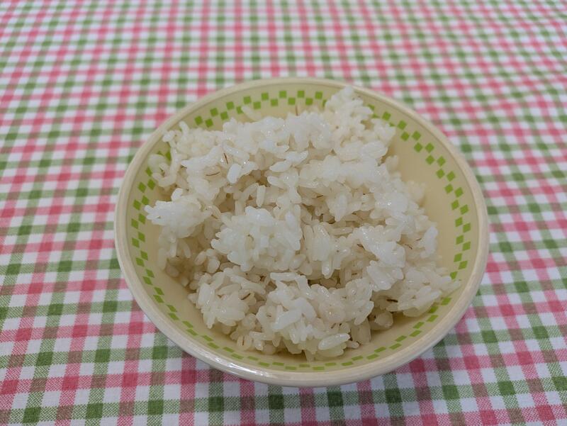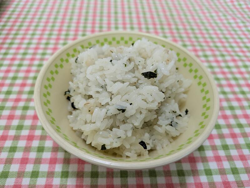 ガーリックライスは、ほんのりとニンニクの香りがして、子どもたちに合わせた塩加減のおいしい逸品でした。