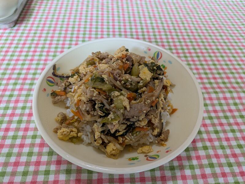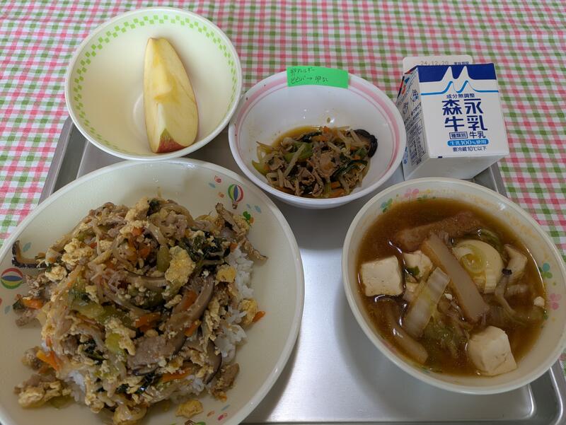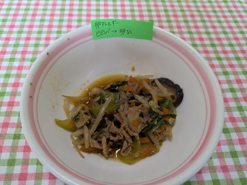 卵アレルギー対応は、うずらの卵を入れずに煮込んでありました。アレルギーを持つ子どもたちもみんなと一緒にタイピーエンをおいしく食べられるようにとの給食の先生方の愛情を感じて、うれしくなりました。