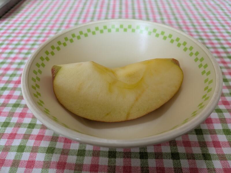 デザートには、今が旬の玉東産の「秋月」梨がでました。梨は、熊本県内で多く生産されていますが、特に有名なのが荒尾市で、100年以上の歴史があるそうです。「秋月」は、「新高」と「豊水」と「幸水」の良いところを引き継いで誕生した「赤梨」だそうです。甘くてきめ細かい肉質が特徴だそうです。私の家族は梨が大好きですが、中でも「秋月」が一番好きと言います。子どもたちもうれしそうに「秋月」を頬張っていました。