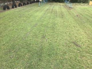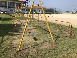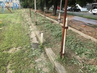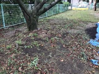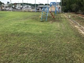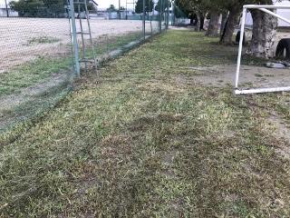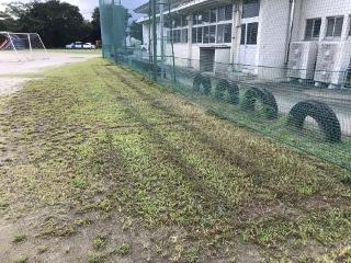 10月4日(日) 2日(金)の放課後、遊具やフェンス、タイヤ周辺部を整備しました。芝刈り機での作業が楽なのですが、このような場所は、刈ることができません。そこで、草刈り機の出番なのです。来週前半で仕上げをし綺麗にしたいと思います。