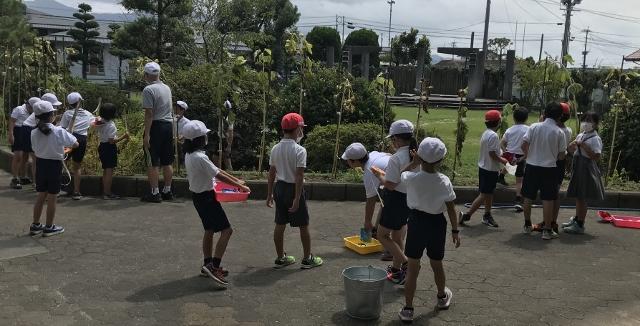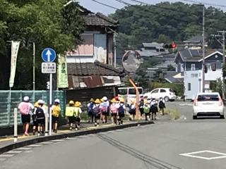 8月20日(木) 夏休みが明けた初日でした。34℃の気温の中、子供達は元気に下校していきました。ただ、遠い子供達は、4km近く歩いて帰ります。熱中症が心配です。先生方には、下校ご通学路の見回りをお願いしました。子供達は、冷却タオルを首に巻いたり日傘を差したりして下校していました。