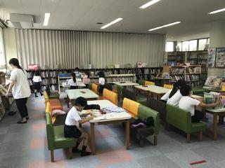 8月21日(金) 8時頃の図書室の様子です。まだ、何人かの子供達が、本を借りていました。図書委員の皆さん係の仕事ありがとう。