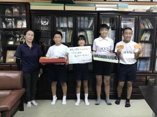 9月5日(土) 本日、植尾かずこ様(かずマネジメントオフィス代表)より、本校の子供達のために本を購入して欲しいと寄付金を頂きました。平日は、なかなか休みが取れないということで、休日に来ていただきました。昨年4月7日(日)に続いてになります。前回お伝えしたとおり、私の横島小学校・横島中学校時代の同級生で、子供達の大先輩です。詳しくは、昨年度の4月7日(日)をご覧ください。昨年度購入した本は、図書室にかずちゃん文庫としてコーナーを作って子供達も親しんでいます。