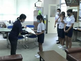 10月1日(木)最後の退所式の様子です。お礼を伝えた後、ヒマワリの種を所員の方に渡す計画だそうです。最後の写真は、全活動を終えての記念撮影です。みんな笑顔でいい顔をしています。