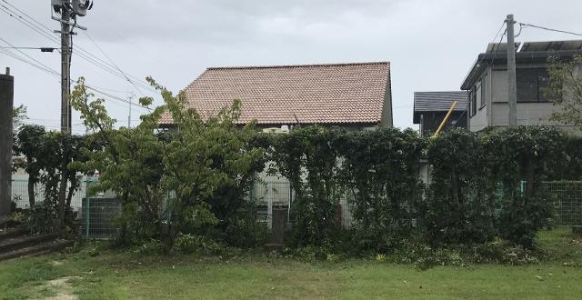 9月30日(水)学校内の樹木が、校地外の民家に迷惑をかけていました。大変申し訳ありませんでした。そこで、樹木剪定を行いました。その後グリーンステージも少し整備しました。