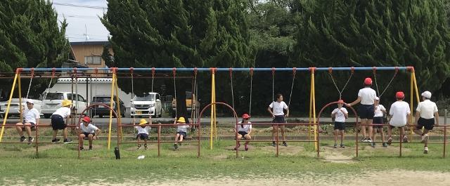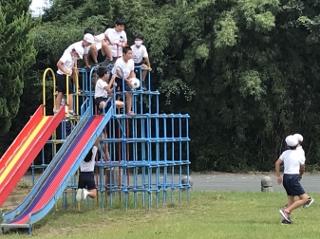 8月31日(月) 今日もとても暑い中、子供達は、鬼ごっこやサッカー、シーソー、野球、ダンス等で元気に遊んでいました。私は、1周見て回っただけで汗びっしょりになりました。子どもたちは本当に元気です。