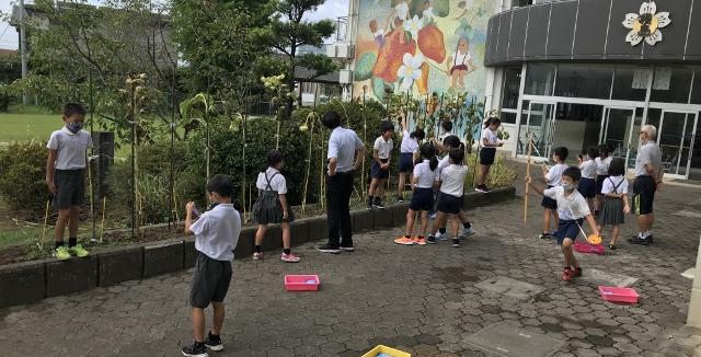 9月19日(土) 1年生が生活科で朝顔を育てました。朝顔の種がいっぱいで来たので、来年の新入児の体験入学でプレゼントします。それに加えて、家族の誰かにプレゼントもするのだそうです。感謝の気持ちが伝わるかな?横島町が朝顔でいっぱいになるといいですね。