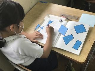 9月4日(金) 2校時に2年生が、算数「長方形と正方形」の低学年研究授業を行いました。三角形と四角形の仲間分けをしながら意味や性質を理解する授業でした。ホワイトボードにまとめたり意見の交流をしたりしながら真剣な表情で学んでいました。