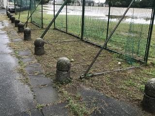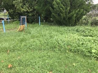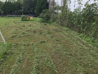 7月27日(月) 雨の合間を縫って、樹木剪定をしました。フェンスからはみ出している枝を中心に剪定しました。写真は、グリーンステージ裏の様子です。あっという間に樹木が伸びていました。