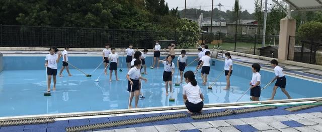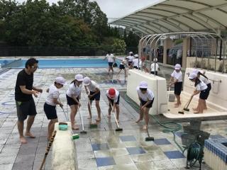 6月19日(金) 4年生が、3・4校時プール掃除をしました。ちょっと肌寒い中頑張ってくれました。ありがとう。