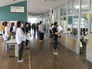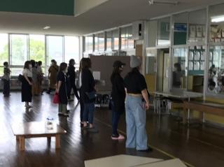 7月9日(木) 今日は、2年生、4年生、6年生の歯科検診を実施しました。機材は、アルコール消毒してあり、一人一人交換して行われます。これは今までもそうでした。新たな対策としては、子供達の距離を保つことです。子供達は約束を守って臨んでいました。写真は、2年生の始まる前の様子です。