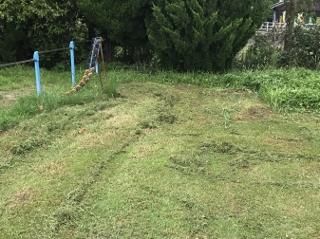 7月8日(水) 草が伸びるのは早い!梅雨に入る前に刈ったと思っていたのに、もう伸びています。最初の3段は、ビフォーとアフターです。