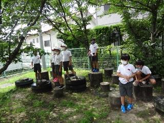 6月23日(火) 教室には、エアコンが入り涼しいのですが、子供達は、外で元気よく遊んでいます。