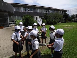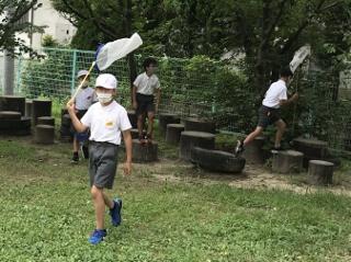 7月8日(水) 2年生が生活科の授業で虫取りをしました。みんな必死になって虫を追いかけていました。とても楽しそうです。